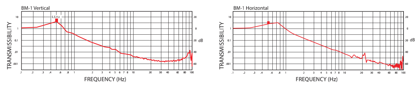MinusK BM-1隔振臺隔振性能曲線圖  |